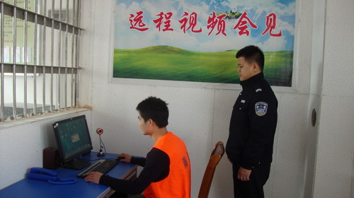 ????梧州零距離網(wǎng)訊 藤縣看守所在推行人性化管理工作上又有創(chuàng)新,允許服刑人員與家屬進(jìn)行網(wǎng)絡(luò)視頻會(huì)面。
