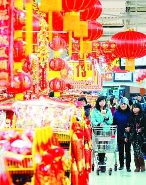 ????為營造濃郁的新年氣氛,各大百貨商場紛紛換上“盛裝”,推出“年貨大街”,處處透出一股濃濃的年味。