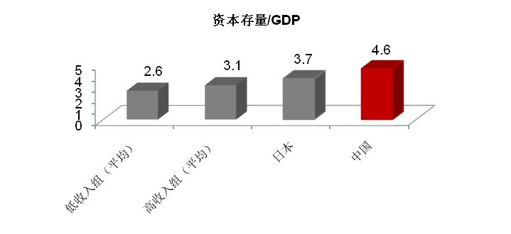 ????根據伍曉鷹(2012)的研究,從1999年起,中國的K/Y值(資本存量/GDP,其倒數為資本回報率)開始超過其他新興國家,而且速度越來越快。到了2009年,中國的K/Y值猛增至4.6 。不但大大超過了“低收入組”內所有的國家(平均值為2.6),而且大大超過了“高收入組”內所有的國家(平均值為3.1),包括K/Y值最高的日本(3.7)。這反映出中國過早地進入了低MPK(邊際資本回報率)階段,盡管中國的人均資本存量還只有美國的7%(根據購買力平價)。
