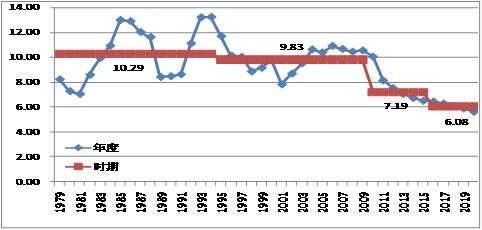 根據蔡昉教授(2011)研究,中國的潛在增長率“十二五”將降至7.19%,“十三五”將進一步減為6.08%。