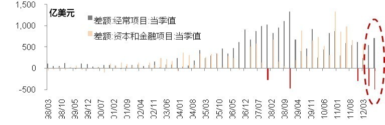 ????若出現經常帳萎縮至無法支撐資本項逆差的情況,這時候本幣貶值預期就可能急劇上升,將導致資本流出擴大,國際收支順差進一步收窄, 國內資產泡沫或將被刺破。