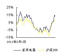 ????從申萬23個(gè)行業(yè)對(duì)比來看,2012年家電行業(yè)累計(jì)上漲15.84%,僅次于房地產(chǎn)和金融服務(wù)板塊,明顯領(lǐng)先于其他20個(gè)板塊,驗(yàn)證我們此前對(duì)2012年持續(xù)看好的判斷。今年1月以來,家電行業(yè)累計(jì)上漲9.51%,仍穩(wěn)居第三,僅次于醫(yī)藥生物和金融服務(wù)板塊,與我們12月對(duì)行業(yè)今年1月配置攻防兼具的判斷相符。