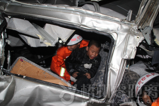 5時(shí)45分,第一現(xiàn)場(chǎng)救援尚未結(jié)束,位于岑溪曇容高速路出口2.5公里處又發(fā)生了一起交通事故,一輛客車(chē)與一輛小面包車(chē)相撞,事故造成4人被困,其中包括一名兒童。岑溪消防大隊(duì)再次出動(dòng)1輛消防車(chē)、7名官兵趕赴救援。消防官兵首先利用破拆工具對(duì)車(chē)頭進(jìn)行破拆,再利用液壓剪擴(kuò)器對(duì)卡住被困人員的車(chē)身部位進(jìn)行擴(kuò)張。在對(duì)被困兒童進(jìn)行施救的時(shí)候,兒童由于劇痛和害怕不停哭喊,消防官兵對(duì)其進(jìn)行耐心安撫。經(jīng)過(guò)將近20分鐘的救援,4名被困人員成功救出。