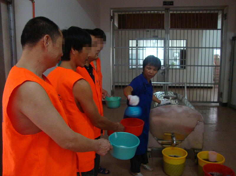 近日持續高溫天氣,藤縣看守所煎煮涼茶發放給在押人員降溫。黃宇寧/攝