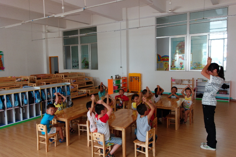 ??? 9月17日,在梧州高新區幼兒園教室里,小朋友正在老師的帶領下做游戲。 為讓園區企業職工子女享受到良好的教育,梧州工業園區管委會投資建設幼兒園,并于今年秋季學期正式開園招生。據悉,幼兒園目前開有大、中、小班,已有70多名學生入園就讀。陳貽澤 攝