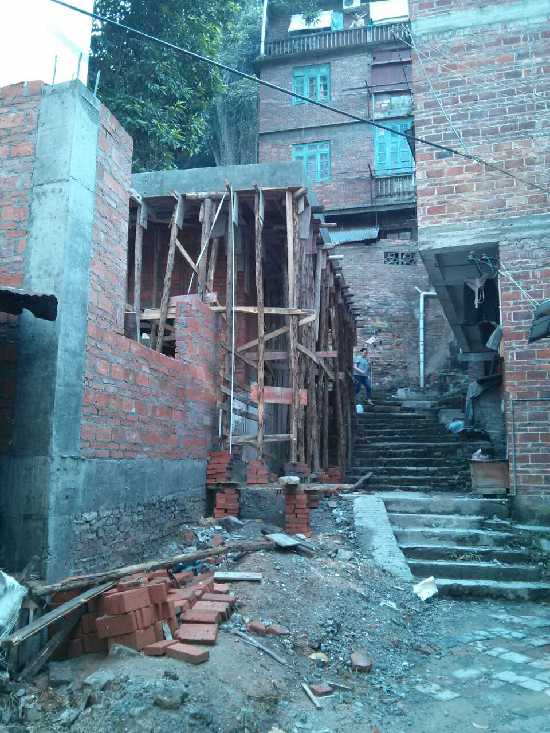 在建的房屋占用了一部分上山道路。 楊苑君/攝