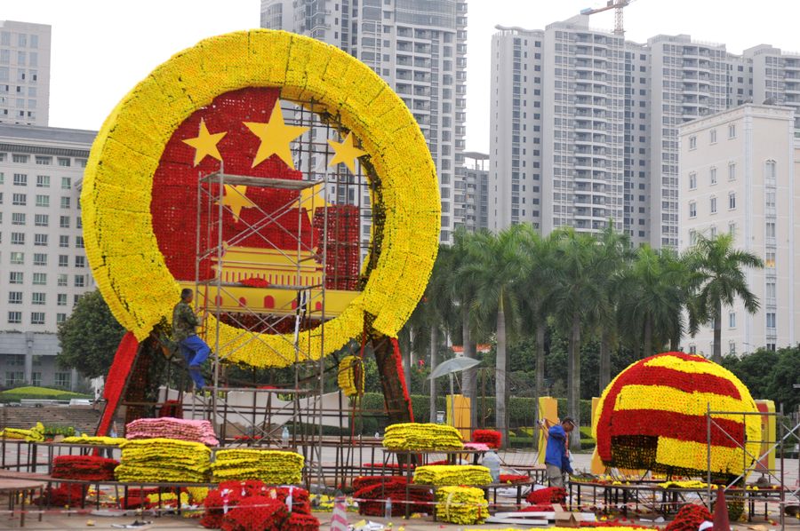 ??? 9月27日,工作人員在市政廣場布置國徽造型的大型景觀花壇。國慶節(jié)前,我市市政部門陸續(xù)在市政廣場、西堤路等重點地段布置節(jié)慶花壇景觀,讓市民感受到了濃郁的節(jié)日氣氛。 西江都市報記者 蒙紹松/攝 | | 編輯:黃東瑩 鐘笑瑩 |