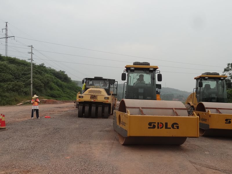 ?在貴港—梧州高速公路項(xiàng)目藤縣禮秀段,幾臺攤鋪機(jī)、壓路機(jī)正在緊張作業(yè)。