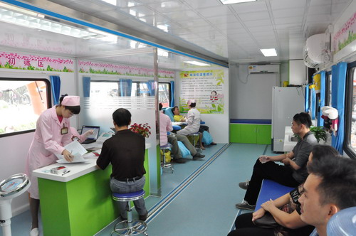 市民可在愛心獻血房車上完成填表、體檢、采血等全部獻血程序。莫蔚/攝