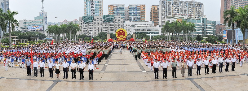 ????上午8時(shí),距離升旗儀式開始還有30分鐘,市政廣場(chǎng)上已站滿了市民。朝氣蓬勃的學(xué)生,列隊(duì)整齊的武警官兵、機(jī)關(guān)干部代表、工青婦代表、公檢法干警,大家肅立著,等候儀式開始。