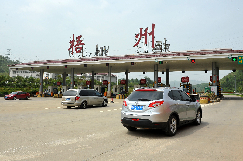 昨日,小轎車免費通過馬梧高速平浪收費站。當日是國慶高速免費通行的首日。西江都市報記者 何鎏/攝