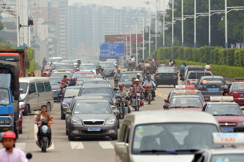 ??? 10月1日,梧州市新興三路上車流如織。當天是國慶長假首日,當天上午,市區道路迎來私家車出行高峰。 西江都市報記者 蒙紹松/攝