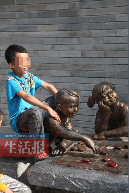這位小朋友騎在景觀雕塑上拍照留影。(來源:廣西新聞網-當代生活報)