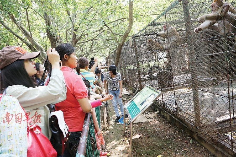 ?? 南寧動物園猴館的工作人員,每天都要不斷清掃游客向猴舍亂扔的食物。記者 唐輝吉攝(來源:廣西新聞網-南國早報)