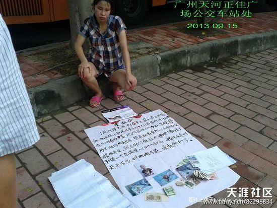 光浩媽媽在廣州大街上求助。圖片由論壇提供