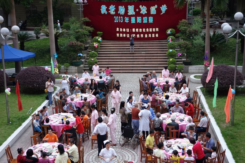 “今年想到辦‘百人宴’,是希望延續中華民族尊老敬老的傳統,希望更多的人來關心老人,也讓老人們能感受到關懷。”梧州市福利院副院長周進忠告訴記者,以往的每年重陽節前后,福利院都會組織文化活動慰問老人, 但舉辦“百人宴”還是頭一次。