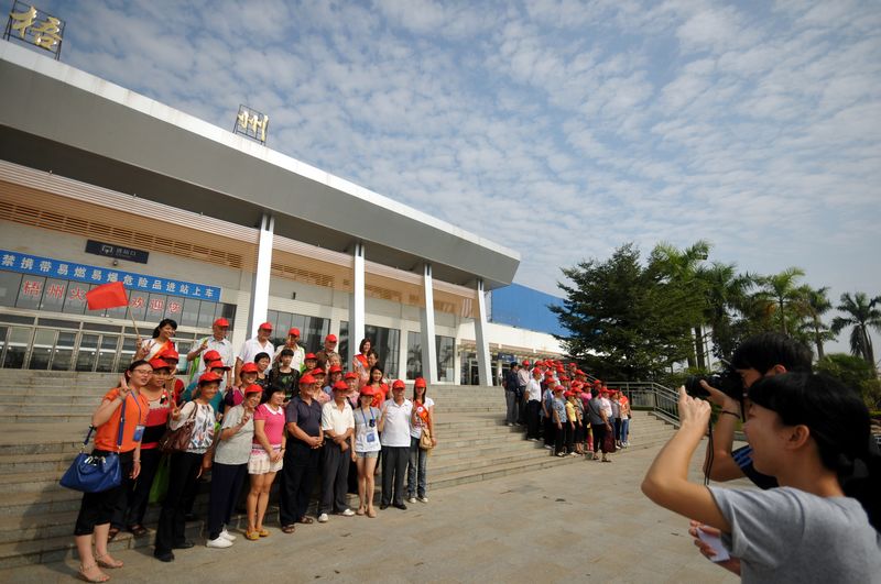 喜看梧州新變化,老人們在火車站站前廣場留影。