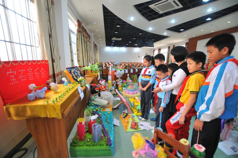 據了解,第十屆梧州國際寶石節“寶石娃娃中國夢”才藝展演賽日前結束,收集到的370多件“寶石娃娃”手工作品在振興小學陳列展出。