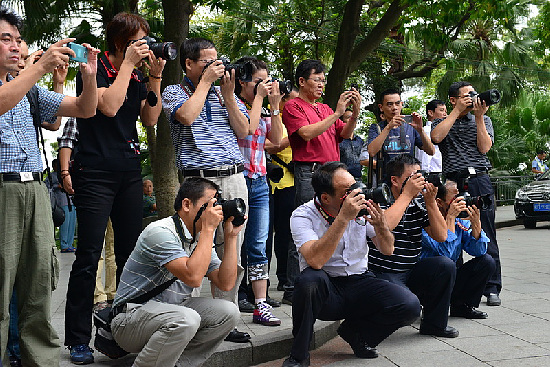 近日,區(qū)公安廳宣傳處在梧州市舉辦全區(qū)公安攝影創(chuàng)作采風活動。來自全區(qū)各地市公安局分管宣傳工作的領導及宣傳民警共40余人在我市中山紀念堂廣場進行攝影創(chuàng)作。梁觀遠 攝