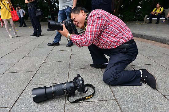 近日,區公安廳宣傳處在梧州市舉辦全區公安攝影創作采風活動。攝影師選擇角度進行攝影創作。梁觀遠 攝