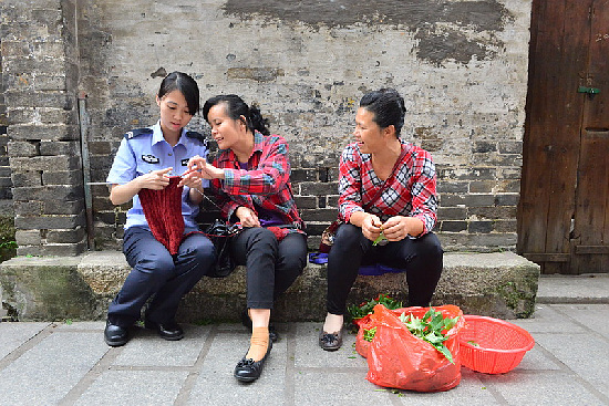 近日,區公安廳宣傳處在梧州市舉辦全區公安攝影創作采風活動。在我市金龍巷,警花與居民打成一片。梁觀遠 攝