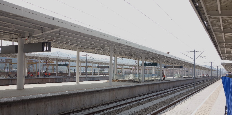 ????10月25日,記者在梧州南站看到,近萬平方米的建筑的外墻還搭著腳手架,施工人員正在安裝外墻玻璃或安裝裝飾物,內(nèi)部裝修也正進行地板磚鋪設、內(nèi)部鋼筋架焊接、排風系統(tǒng)安裝等。而在站臺、雨棚范圍,全部用護欄圍閉起來,與車站建筑物隔離。透過護欄,可以看到近百名中鐵電氣化集團的施工人員分散在不同位置,正在完善供電、站臺站牌等站臺設施。