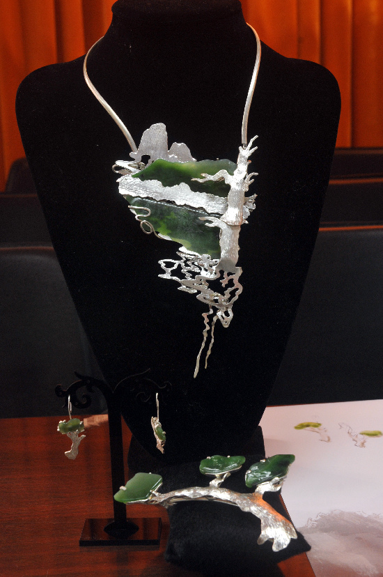 ????據本次大賽主辦方介紹,入圍的38幅專業組作品和63幅業余組作品樣式比較多元化,包含了項鏈、耳環、戒指、手鏈、胸針等,具有設計理念先進、造型美觀、制作工藝要求高等特點。為了詮釋“時尚中國”這一設計主題,本屆大賽不少作品都運用了中國元素。