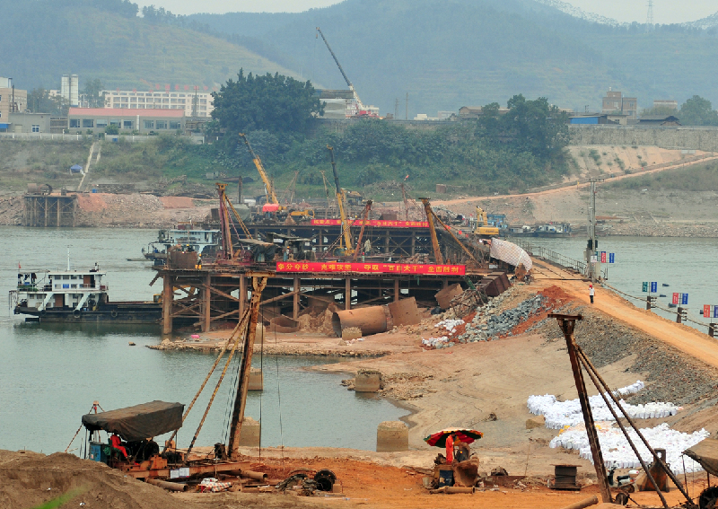 ????主河橋1080米、跨線橋150米的西江三橋A標(biāo)段,已全面展開包括水中墩在內(nèi)的十多個(gè)墩、臺(tái)樁基礎(chǔ)施工,并著手準(zhǔn)備下階段構(gòu)筑圍堰。同時(shí),該工程制梁場(chǎng)正在日夜不停地加緊制梁,已完成制梁300多片,計(jì)劃明年春節(jié)前開始跨線橋架梁。