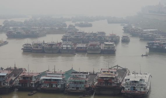 11月20日上午, 大批船舶停泊在鴛江麗港對出江段,等待通過長洲水利樞紐船閘。目前,長洲水利樞上下游待航船舶已超過500艘。黃東榮 攝