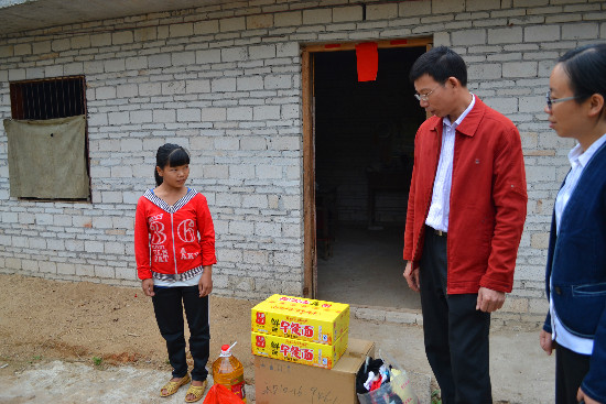 ????岑溪市水汶鎮(zhèn)大衛(wèi)村是梧州市商務局的掛點幫扶對象。獲悉小菊煥的情況后,11月23日下午,梧州市商務局派出以局紀檢組長覃錦才帶隊的慰問組,上門為小菊煥送上了慰問品和慰問金,鼓勵小菊煥要堅強,不要放棄學習。