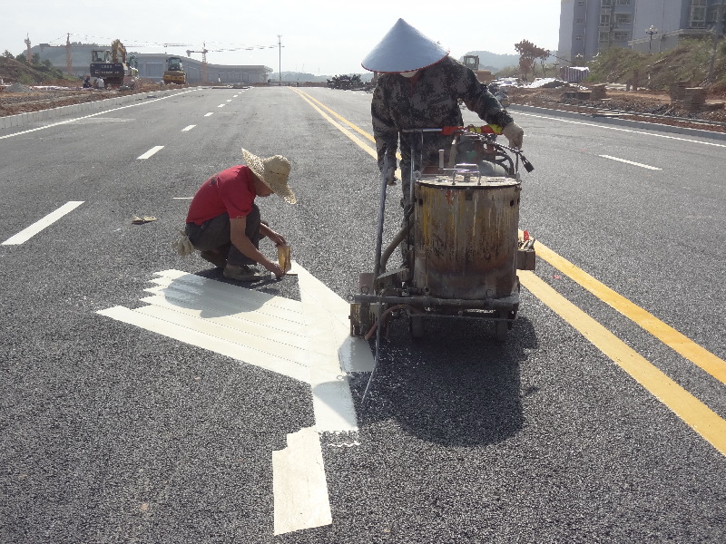 ????11月26日,工人正在南廣鐵路梧州站進站大道上施劃交通標線。