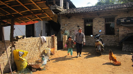 覃超全的家是一棟簡陋的小平房。經過改造后,這家人不僅有了沼氣池,而且家門前的黃泥地將鋪上水泥。
