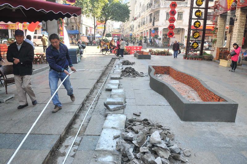 ????據(jù)了解,梧州老字號特色小吃街開張營業(yè)已有一段時間,有關(guān)部門目前繼續(xù)完善小吃街的各種設(shè)施。日前,施工單位已在小吃街中央砌建了數(shù)座花壇,種上綠色植物后將配以彩燈裝飾,扮靚街區(qū)環(huán)境。 李鴻榮 攝