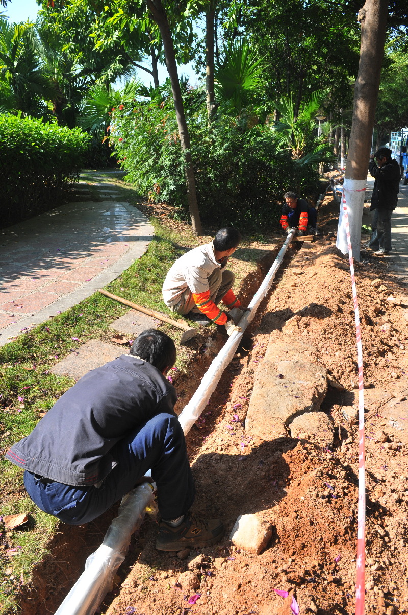 ????12月3日,在西堤二路的西堤公園,工人在埋設供水管。
