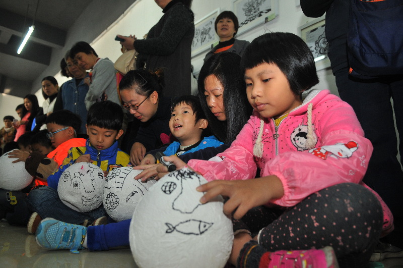 ????12月1日,在市群眾藝術館展覽廳,孩子們正在繪制手工裝飾品。