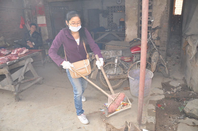 ????清潔的過程中,記者在賣豬肉的攤檔旁掃出了不少被攤主切出的豬蹄外殼,豬肉攤的經(jīng)營者并沒有養(yǎng)成先把垃圾儲(chǔ)存再統(tǒng)一丟棄的習(xí)慣,記者一邊掃,他卻一邊扔垃圾。村民們對(duì)清潔衛(wèi)生的鄉(xiāng)村環(huán)境有要求,自己卻沒有做到自覺維護(hù)環(huán)境的清潔。 |