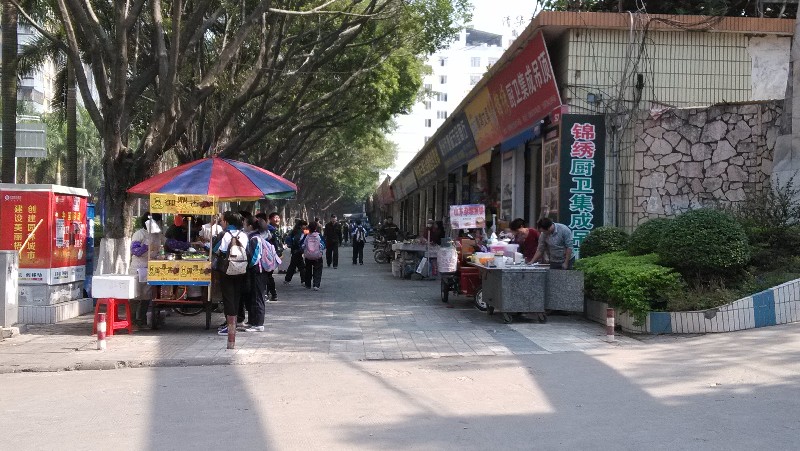 ????12月4日中午,數個流動攤檔在市四中校門外擺賣小吃,吸引了不少學生購買。