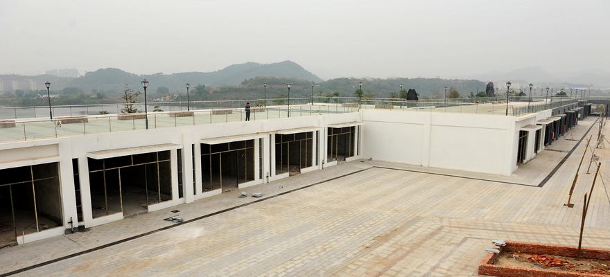 ?12月10日,市民走在玫瑰湖特色街二層平臺上。目前,玫瑰湖特色街建設順利,記者在現場看到,特色街商鋪已完成主體工程建設,商鋪外墻已經粉刷上白色或深灰色的墻面,并安裝好落地玻璃的門面,工人正在忙于安裝二層平臺的玻璃圍欄和路燈,另外,街區廣場的地面造景也在進行中。據悉,特色街總投資達3200萬元,目前已完成投資2200萬元,可容納100多家商鋪進駐經營。? 西江都市報記者 何鎏/攝