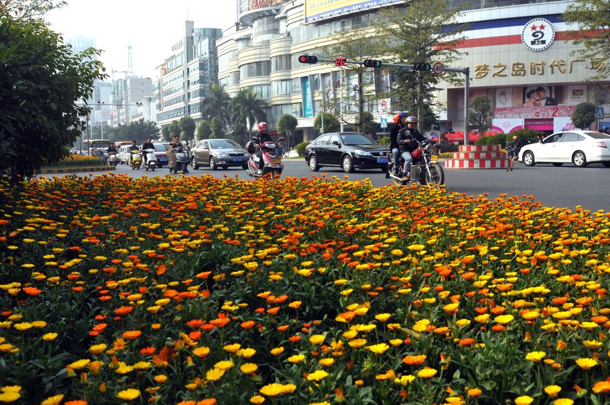 ?12月10日,夢之島時代廣場對出道路的綠化帶上,成片的花兒開得正盛,一片燦爛。時下雖然正值冬季,但市區綠化帶間經常可以見到朵朵花兒,為城市環境增添了許多靚麗的色彩。 西江都市報記者 蒙紹松/攝
