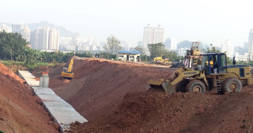 ???? 梧州市區南岸片區首條排水渠完成鋪設,目前正回填土方。