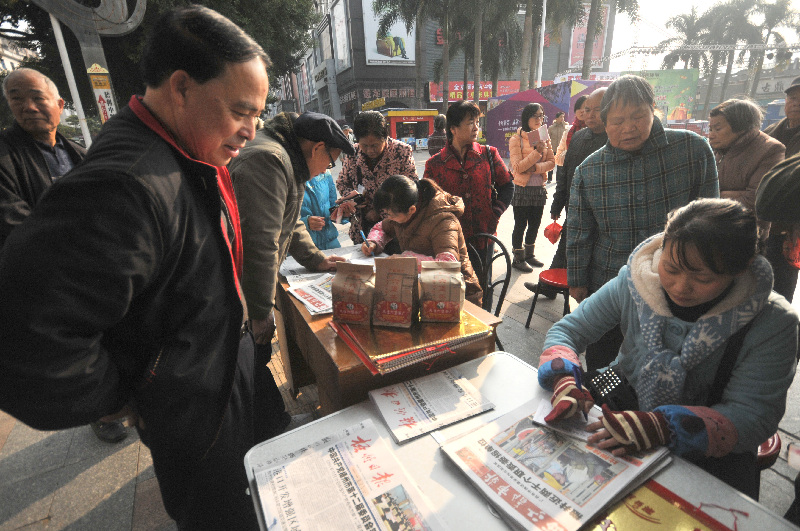 ????12月21日,在鴛江麗港廣場舉行“讀者面對面”活動的現場,不少市民踴躍訂閱《梧州日報》和《西江都市報》。