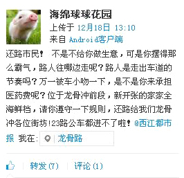 網(wǎng)友反映在龍骨路一家新開(kāi)張不久的大排檔占道經(jīng)營(yíng),行人無(wú)法從人行道通行?! 。▉?lái)自新浪微博)