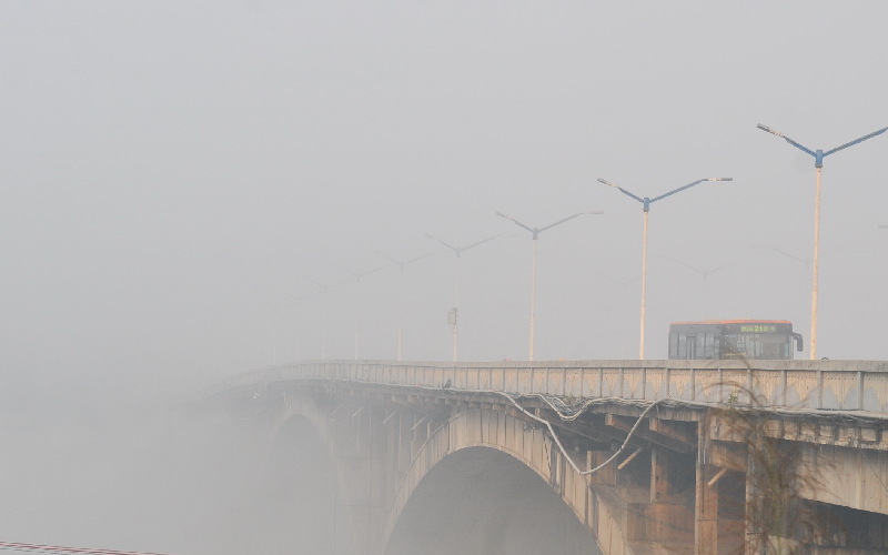 ????12月26日早上8時(shí)左右,市區(qū)臨近江邊的道路以及大橋被一片大霧籠罩,道路能見度較低,不少人出行都戴上了口罩。據(jù)市氣象部門工作人員介紹,由于早上氣溫僅有4℃—5℃,溫度較低,在輻射降溫的影響下,水汽在低溫的空氣中凝結(jié)成水霧,因此易在江面和臨江的地方形成較大的濃霧,太陽出來后大霧會(huì)逐漸散去。 李鴻榮 攝