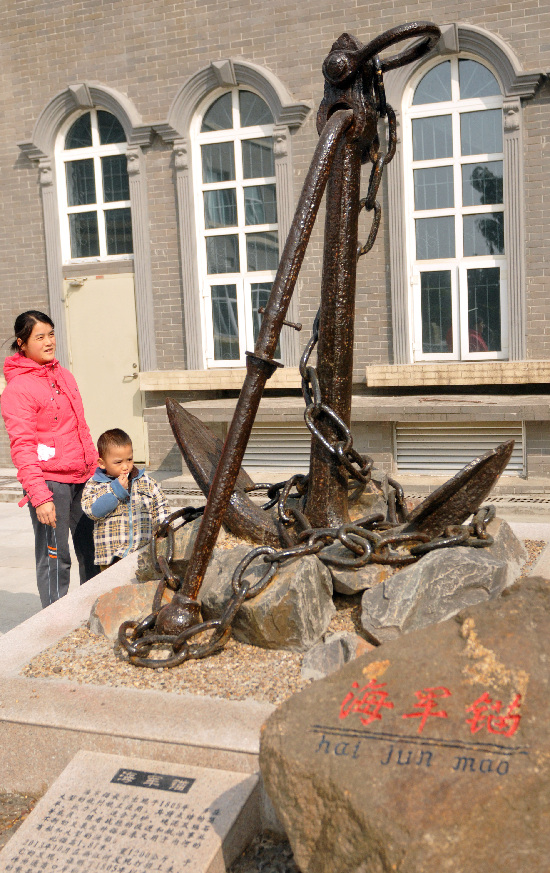 12月28日,市民參觀在梧州市博物館前展出的海軍錨。 西江都市報記者 蒙紹松/攝