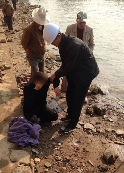 落水女子被救上岸后,其他聞?dòng)嵹s來的施工人員對(duì)其進(jìn)行勸導(dǎo)和安撫。 紀(jì)榮蘭/攝