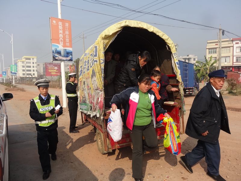 ?2014年1月2日上午,藤縣濛江交警中隊民警對一輛搭客三輪小貨車依法予以查扣。隨著春節臨近,外出辦事的群眾不斷增多,-些小貨車司機唯利是圖,在后倉加裝板凳后開始搭客營運,且這些車輛超載、超速十分嚴重,危害群眾的出行安全。當天上午,藤縣濛江交警中隊抽調警力予以重拳整治,查扣違法車21輛,及時消除一批安全隱患。 李偉明/攝