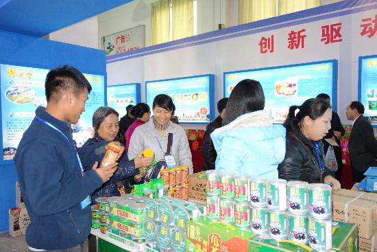 ????1月9日,客商在梧州展區內選購特色展品。 當天,2014年科技表彰大會暨第23屆廣西科技活動周在南寧市舉行,一批新技術、新產品在廣西展覽館集中展示、交流。今年科技周主題是“創新驅動發展,科技引領未來”。