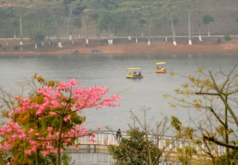 ?如今,越來越漂亮的玫瑰湖公園,已經(jīng)成為不少梧州市民休閑娛樂的好去處。游人坐著小船在湖上游玩,環(huán)湖美景可盡收眼中。