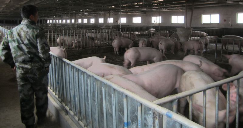 1月8日,在蒼梧縣沙頭鎮橫江村一個自動化養豬場,工作人員在巡查豬舍?! ?/p>