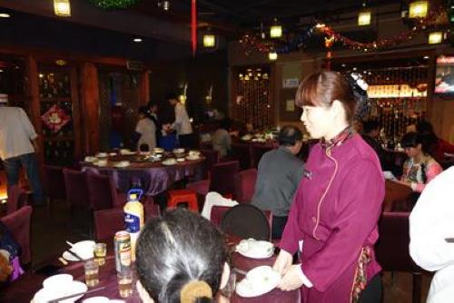 ????當天下午6時許,餐廳的大廳漸漸熱鬧起來,“歡迎光臨”的親切招呼聲不絕于耳。
